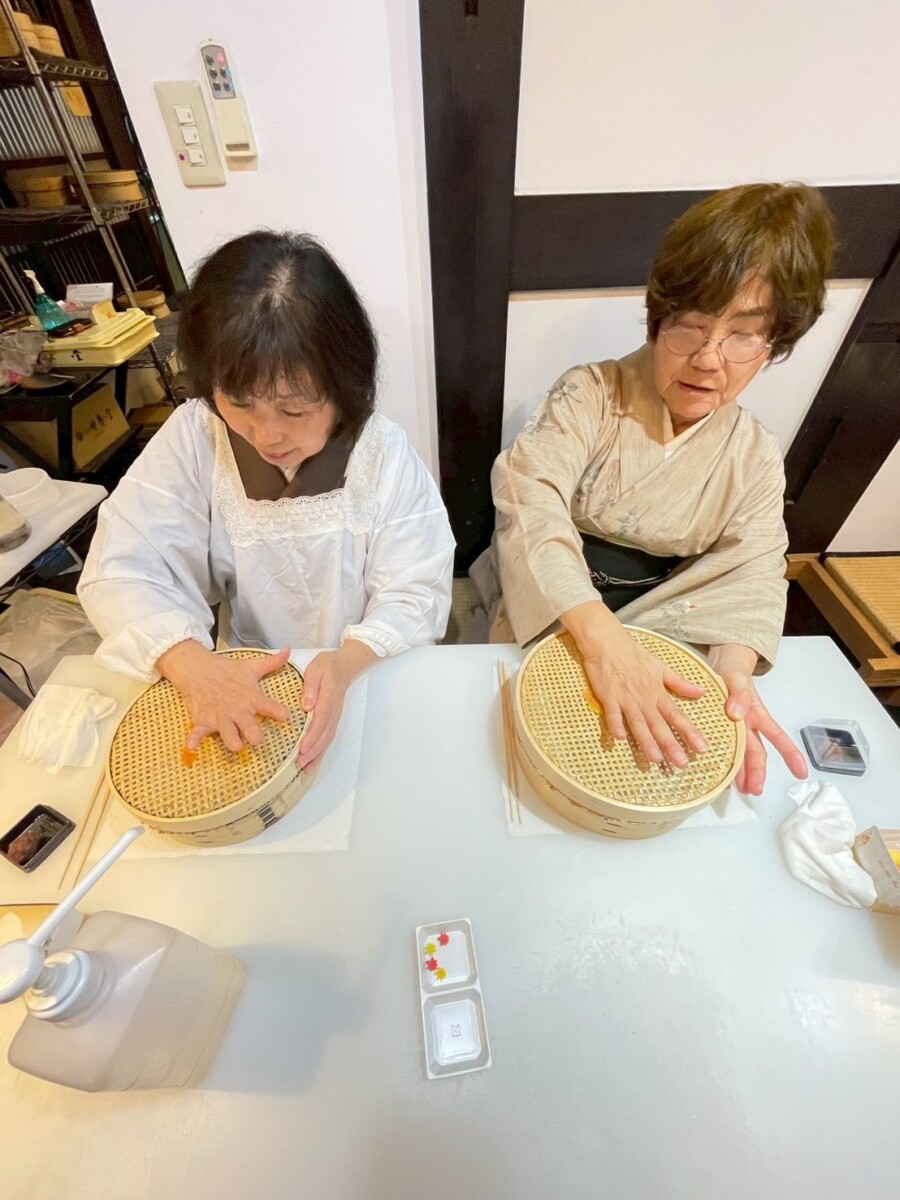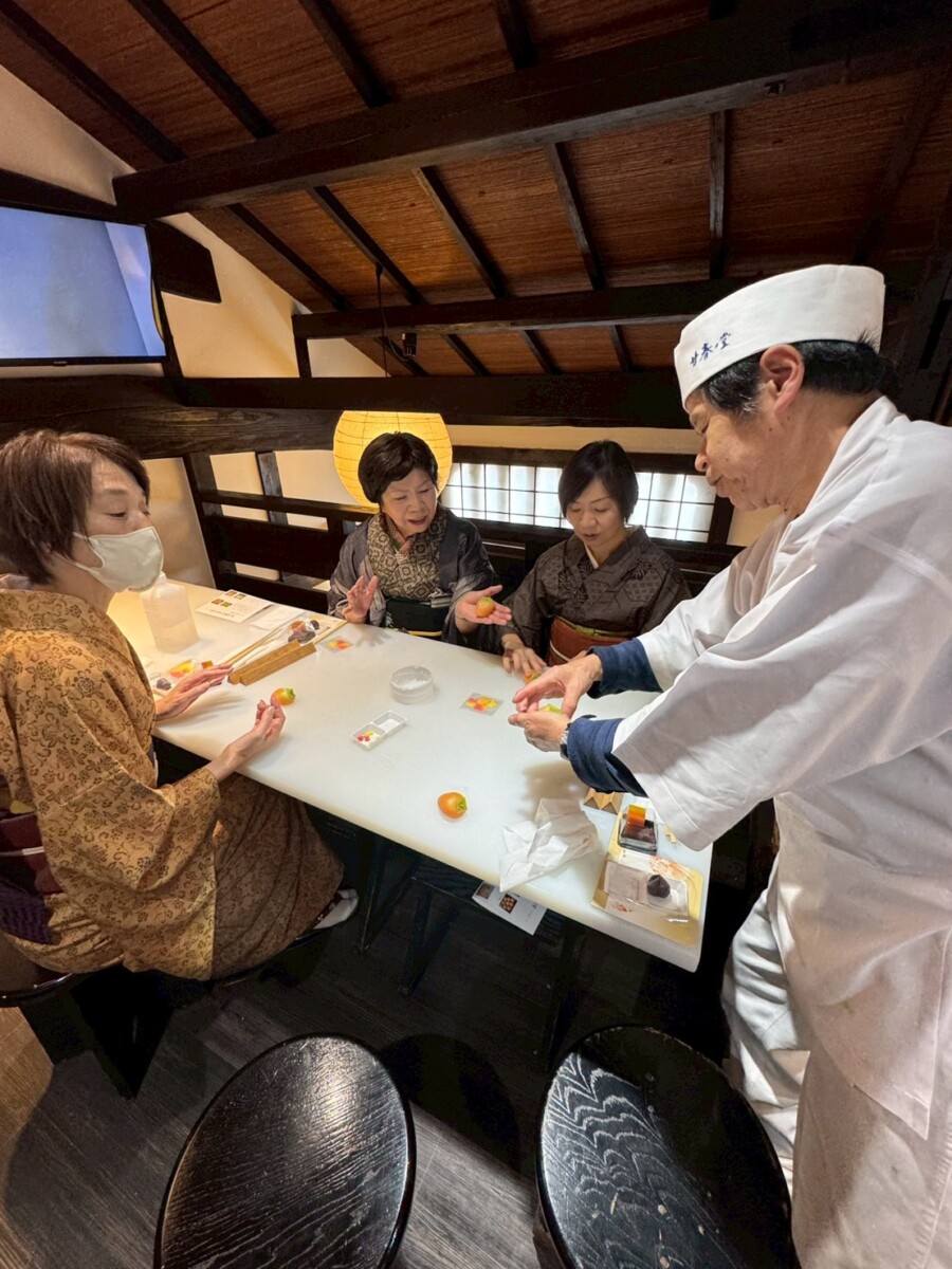 職人さんの丁寧な手ほどきで、季節の練り切りをひとつずつ形づくる楽しい時間に。