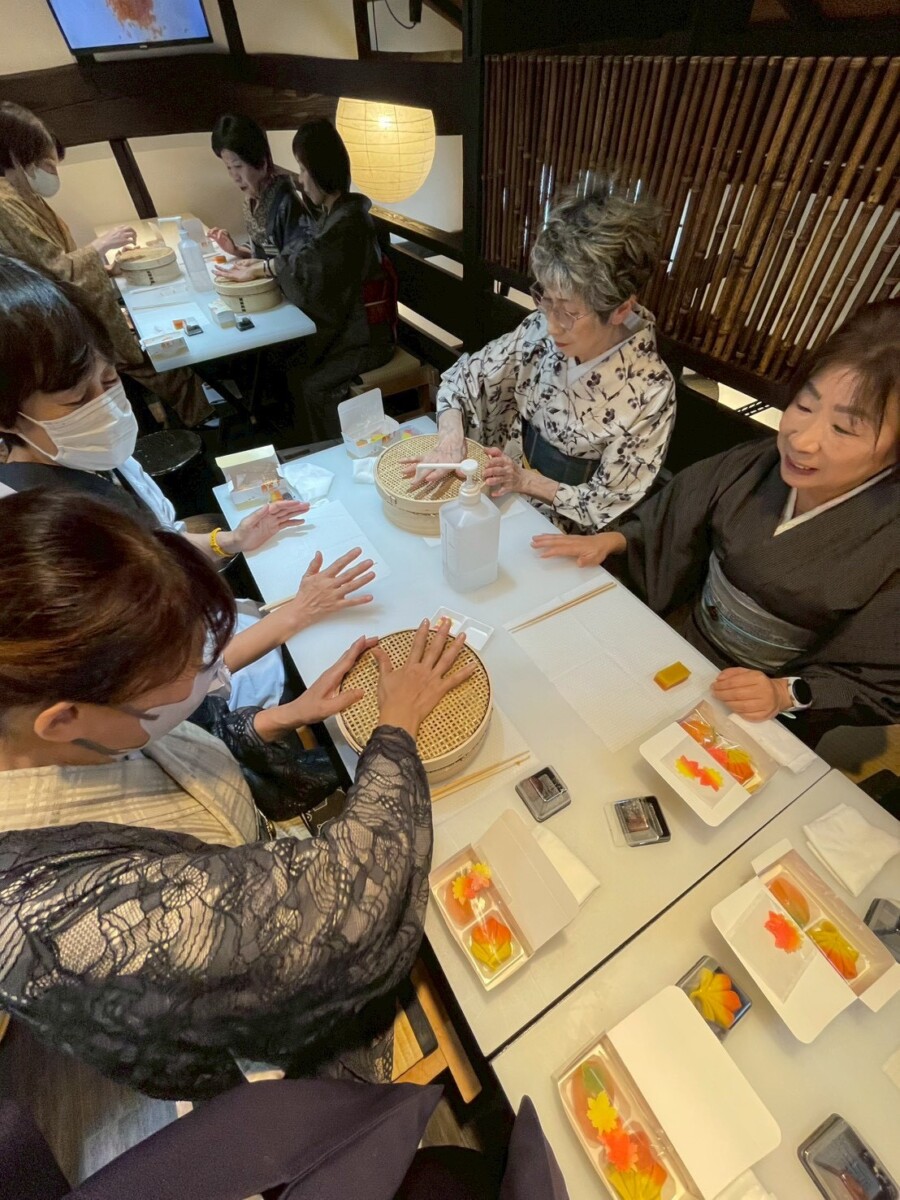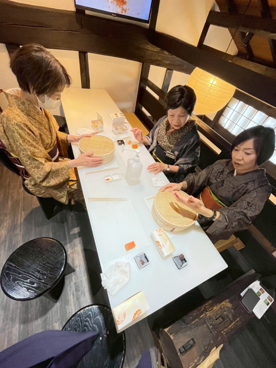 和菓子作りは職人さんのペースがついていくのに必死だった。食事場所から体験場所まで近いのが良かった。